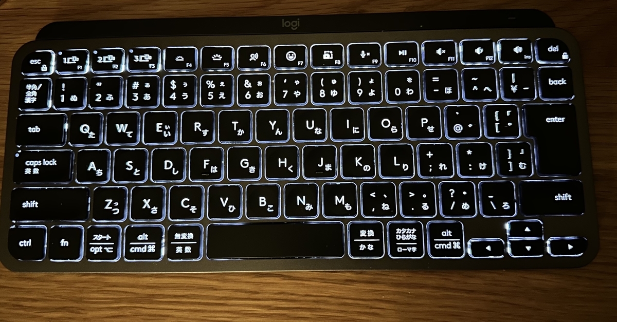 Mx Keys miniはMx Keys同様周りが暗くなるとキーボードが光ります。遊びがあり実用性の高いギミックで、Appleのデザインに通じるところを感じます。
